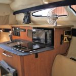 This boat is a two owner example which has been lightly used and extremely well looked after. Bar one season of use in the sea it has spent its life in fresh water and always been wintered indoors and it really shows. She is fitted with a Max Power Bow Thruster, Lewmar Anchor Windlass, a Garmin Chartplotter, VHF Radio, TV/DVD player and full camper canvas enclosure.