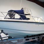 It has all the hallmarks of a low hours boat and is very well spec’d with Chartplotter, VHF, Livewells, Deck Washdown, Porta-potti Toilet, Twin Batteries, Ski Pole, and even a Spray Hood Cover on the bow.