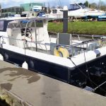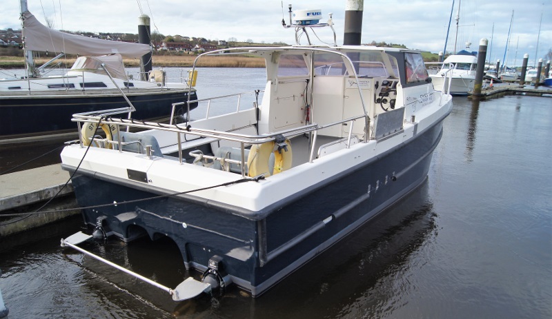 This Cheetah Catamaran is 8.53m long, with a wide beam of 3.00m, and is fitted with a pair of powerful and efficient Diesel sterndrives. It’s commercially certified to carry up to 12 passengers, but she would equally make a fantastic fast fishing boat for leisure use…