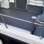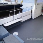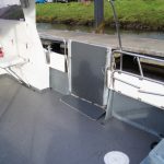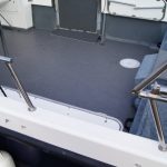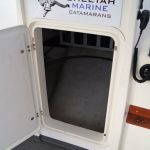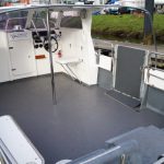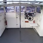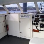 The catamaran hull shape and 10′ beam means that not only is this a very stable and comfortable boat at sea, but with her narrow twin hulls she is very efficient to run and when combined with twin diesel motors she is an extremely economical boat with an impressive turn of speed when you need it.