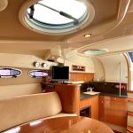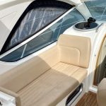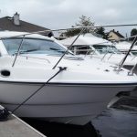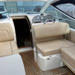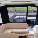 With a sliding fabric roof it converts from an open top, wind-in-your-hair, sports cruiser to a closed roof cosy coupe in a matter of seconds. With the sun shining and the roof open, the pair of 190hp sterndrives allow you to blast along enjoying the best of open top sports boating. But when the weather is that bit cooler, you can close the roof and cruise in comfort late into the season…