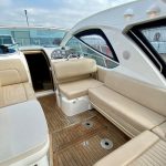This example is in absolutely outsanding condition throughout. It has had only one owner from new and has only ever been used in freshwater. There’s 815hrs on the clock. The boat has been meticulously maintained, stored ashore every winter and is the nicest example that I’ve offered for sale yet. It boasts a great spec including teak decks, anchor windlass, bow thruster, recently replaced roof fabric and the larger twin 190hp Volvo Penta D3 motors.